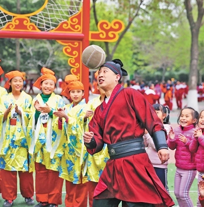 “春日蹴鞠,承載著古人的生活意趣,也帶給今人身心愉悅。”李偉鵬說,“這一刻,文化傳承更具象化了!”