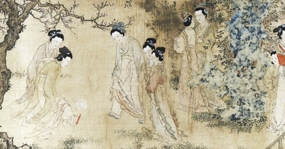 明代《仕女圖卷》局部。