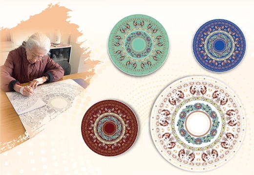 這個展項由94歲的著名工藝美術(shù)家常沙娜領(lǐng)銜創(chuàng)作,影像由中影(北京)電影制片廠有限公司制作。影像以4幅敦煌紋樣圖開篇。“一共制作了龍鳳兩個版本,每一版都包含石青、石綠、紅、白4個顏色。敦煌寶相花、蓮花、龍鳳等元素均取自我臨摹的敦煌紋樣,都是象征吉祥、繁榮的紋樣。”常沙娜介紹,“鳳鳥取自五代428窟,寓意吉祥的祝愿;牡丹纏枝紋,代表繁榮、吉祥之意;石榴卷草紋,傳達(dá)了吉祥和豐富美好的寓意;雙龍吐珠紋樣也寓意吉祥喜慶;龍鳳紋樣圖案組合成和諧的圓盤,有龍鳳呈祥之意。”