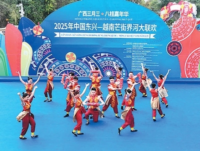 本報(bào)電(記者龐革平)4月13日,2025年中國東興—越南芒街界河大聯(lián)歡活動(dòng)在中國廣西東興國門景區(qū)國旗街舉辦。此次活動(dòng)旨在慶祝中越建交75周年暨“中越人文交流年”,進(jìn)一步弘揚(yáng)中越傳統(tǒng)友誼,深化雙方人文交流與合作。北侖河畔,春意盎然,來自中越兩國的藝術(shù)家與各界民眾歡聚一堂,以藝術(shù)為媒,共同譜寫中越友誼的新篇章。