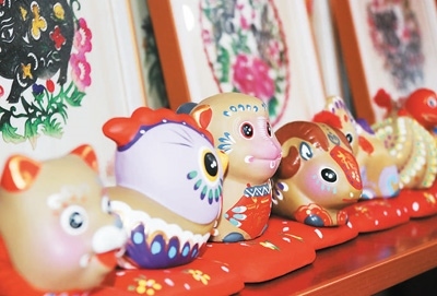 十二生肖造型泥塑。