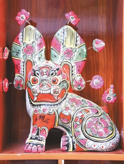 六營(yíng)村“坐虎”彩繪泥塑。