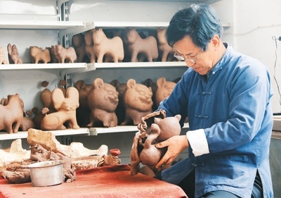 鳳翔泥塑中的經(jīng)典造型“坐虎”。