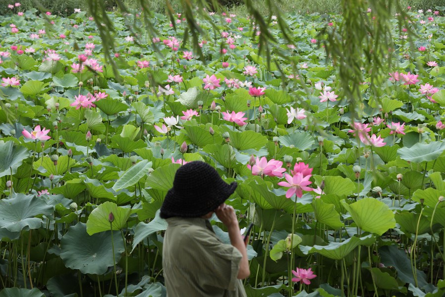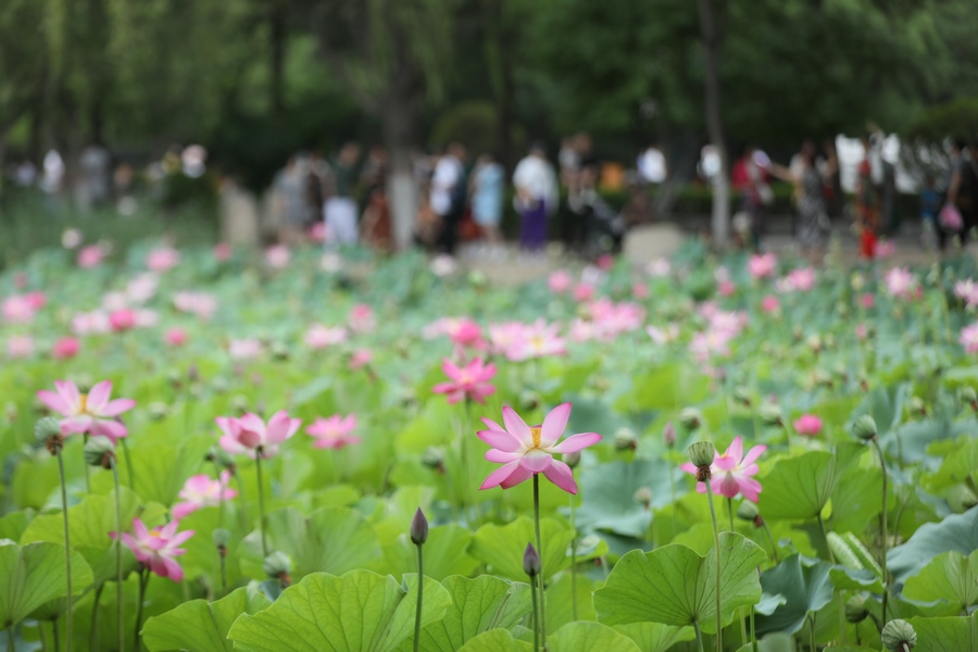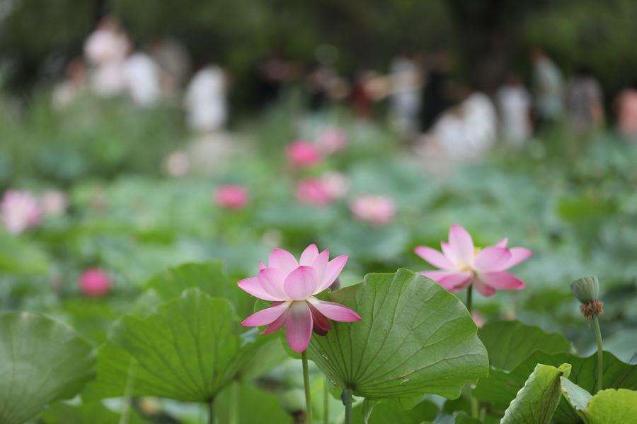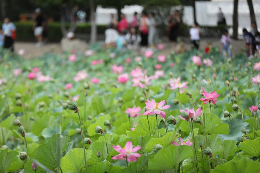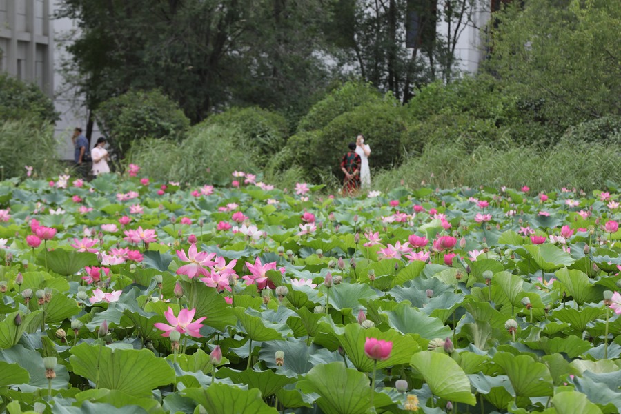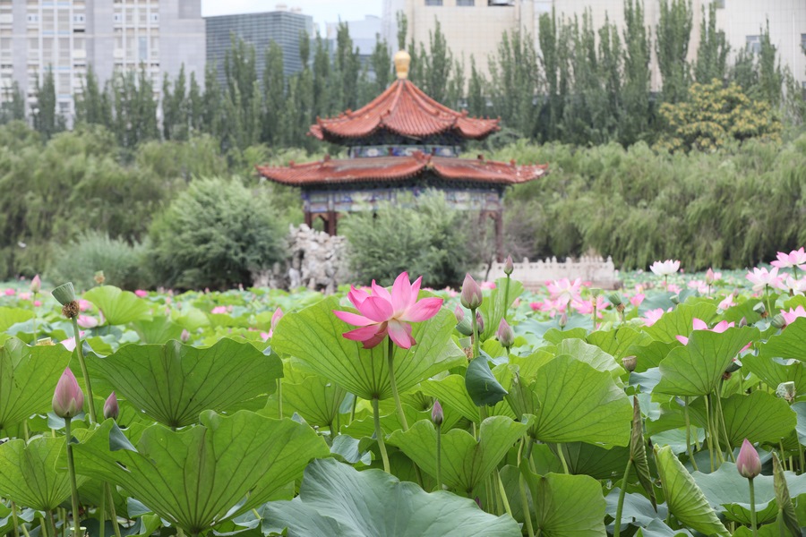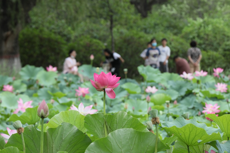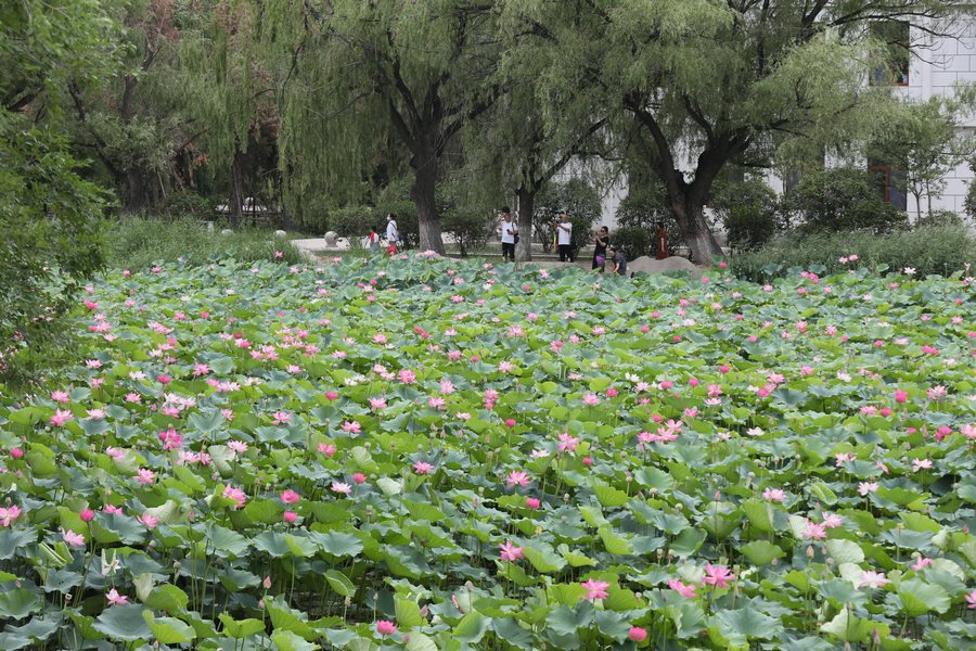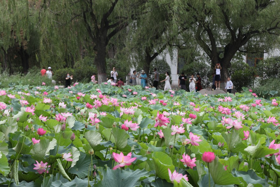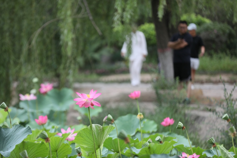 7月30日,呼和浩特青城公園的荷花進入最佳觀賞期,吸引眾多游人前來打卡。