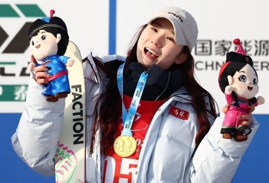 劉夢(mèng)婷的雪板上有一個(gè)“谷”字,她解釋說這是谷愛凌同款定制雪板。“我很喜歡她的風(fēng)格,把她作為我的榜樣,激勵(lì)我進(jìn)步?!?/p>