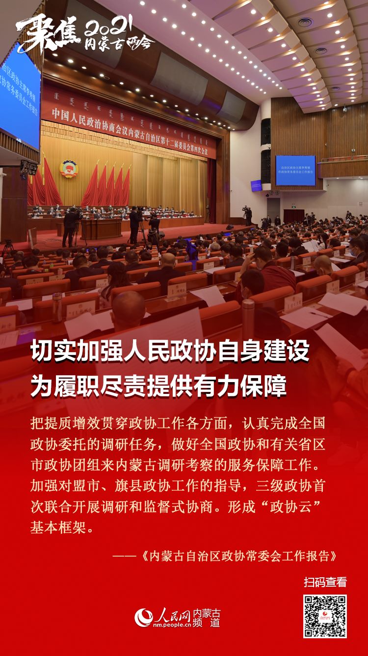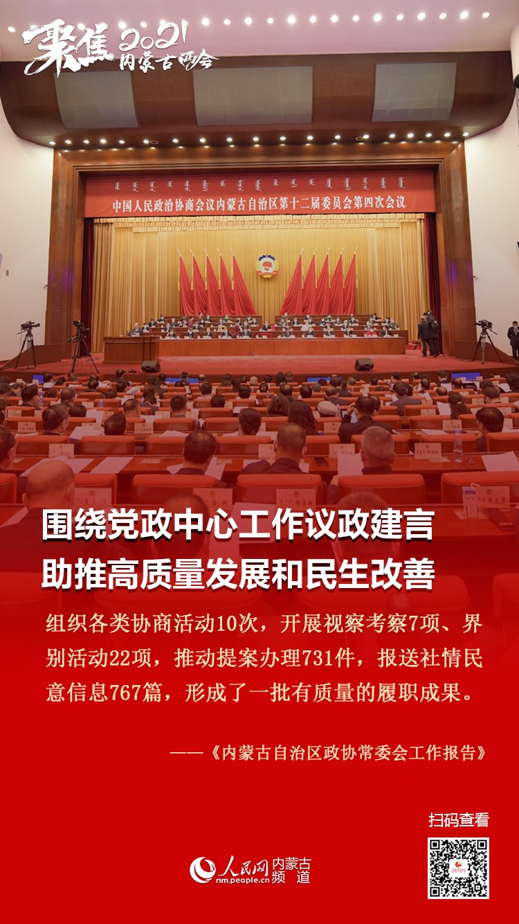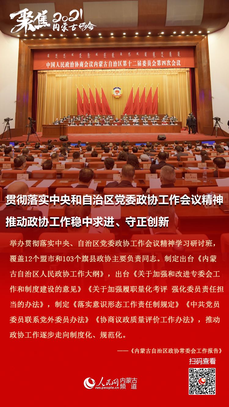 1月25日上午,自治區(qū)政協(xié)十二屆四次會議在內(nèi)蒙古人民會堂隆重開幕。自治區(qū)政協(xié)主席李秀領(lǐng)作政協(xié)內(nèi)蒙古自治區(qū)第十二屆委員會常務(wù)委員會工作報告。今年的政協(xié)常委會工作報告都有哪些亮點,2021年主要工作安排有哪些,七張圖帶您梳理!