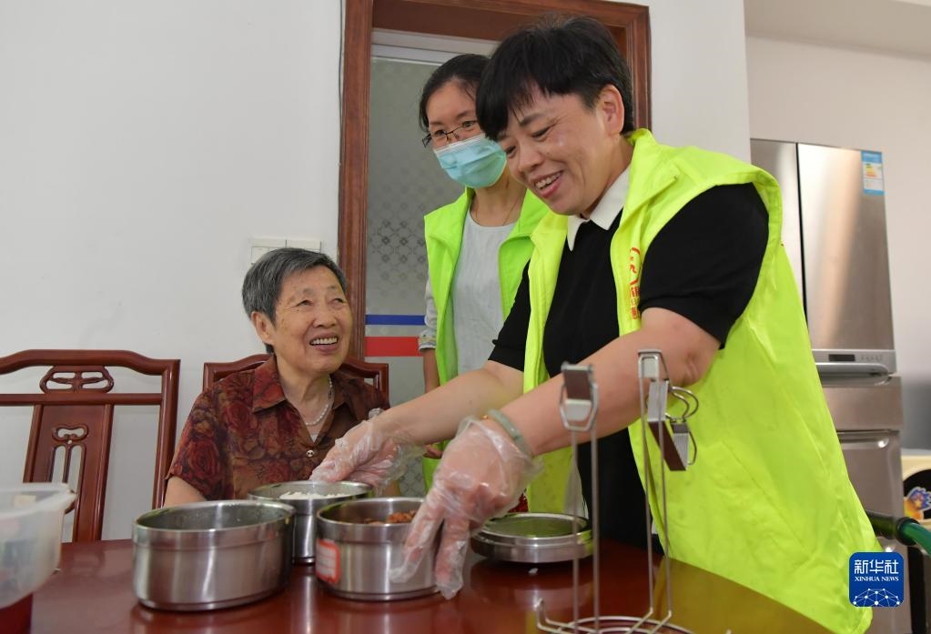 在江西省南昌市東湖區(qū)彭家橋街道文教路北社區(qū),“幸福食堂”的義工在給社區(qū)內(nèi)出行困難的老人提供送餐服務(wù)(2020年7月29日攝)。從2018年12月起,南昌市東湖區(qū)彭家橋街道在社區(qū)打造以黨建引領(lǐng)、社區(qū)主導(dǎo)、愛(ài)心企業(yè)贊助的“幸福食堂”,專門為社區(qū)獨(dú)居、孤寡及生活困難的老年人提供營(yíng)養(yǎng)餐,以此進(jìn)一步完善社區(qū)居家互助養(yǎng)老服務(wù)。新華社記者 彭昭之 攝