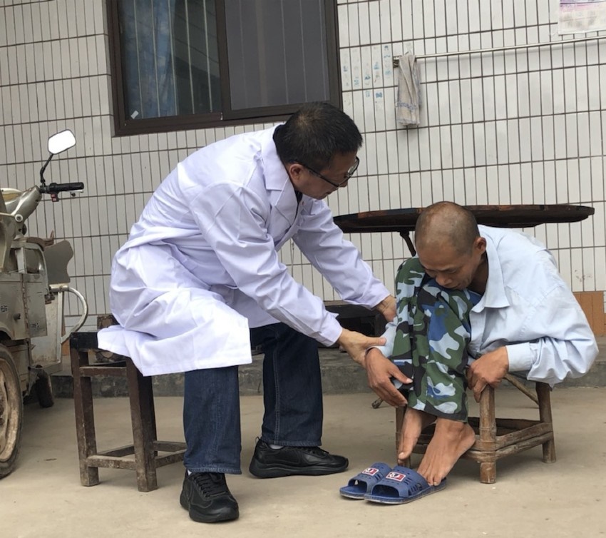 梁益建在病患家中對其進(jìn)行康復(fù)狀況監(jiān)測。成都市第三人民醫(yī)院供圖