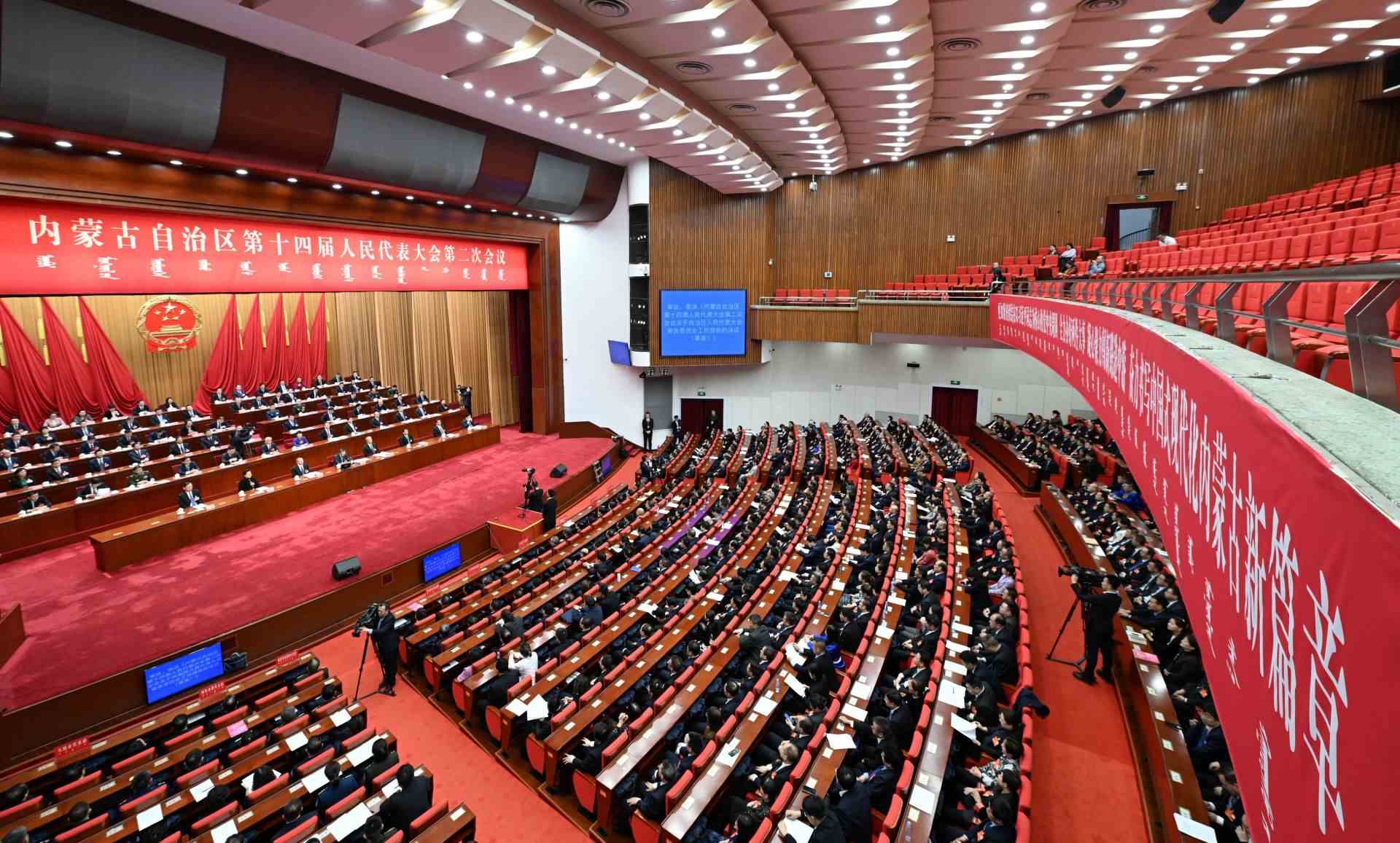 2月2日下午,自治區(qū)十四屆人大二次會(huì)議圓滿完成各項(xiàng)議程,在內(nèi)蒙古人民會(huì)堂勝利閉幕。本次大會(huì)審議批準(zhǔn)了人大常委會(huì)工作報(bào)告和“一府兩院”工作報(bào)告等6個(gè)報(bào)告,審議通過了關(guān)于修改內(nèi)蒙古自治區(qū)人民代表大會(huì)及其常務(wù)委員會(huì)立法條例的決定,圓滿完成了選舉任務(wù)。會(huì)議期間,全體人大代表肩負(fù)著全區(qū)各族人民的重托,認(rèn)真履行憲法和法律賦予的職責(zé),發(fā)揚(yáng)民主、履職擔(dān)當(dāng)、建言獻(xiàn)策、共商大計(jì)。代表們紛紛表示,要牢記囑托、感恩奮進(jìn),以鑄牢中華民族共同體意識(shí)為各項(xiàng)工作的主線,砥礪前行、苦干實(shí)干,為奮力書寫中國(guó)式現(xiàn)代化內(nèi)蒙古新篇章貢獻(xiàn)力量。