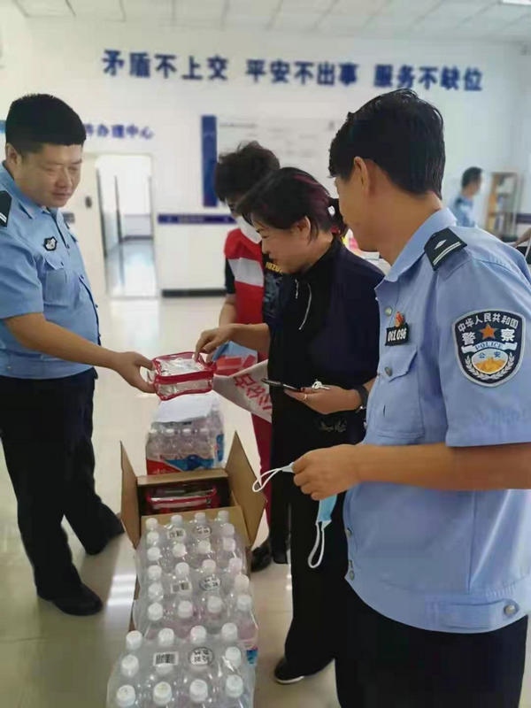 活動(dòng)中,兩家黨組織為道北派出所捐贈(zèng)20件礦泉水、50包口罩、50套清涼包,助力道北派出所民警抗疫防暑。