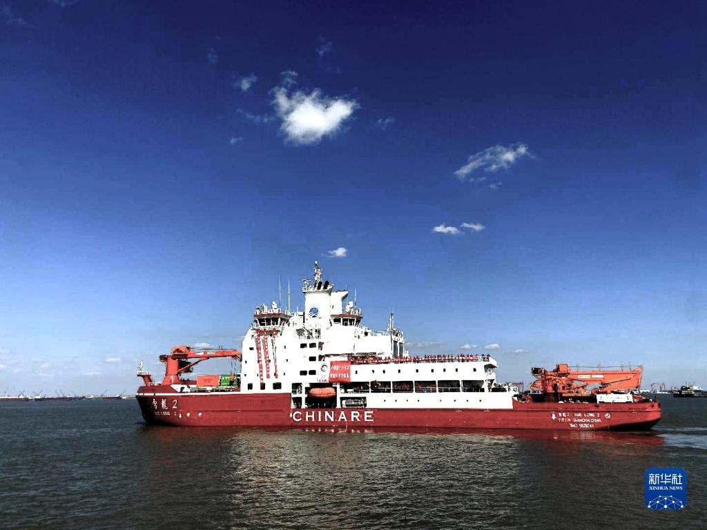 2020年11月10日,中國第37次南極科學(xué)考察隊(duì)乘坐“雪龍2”號(hào)極地科考破冰船從上海起航,奔赴南極執(zhí)行科學(xué)考察任務(wù),這是“雪龍2”號(hào)極地科考破冰船駛離碼頭。新華社發(fā)(中國極地研究中心供圖)