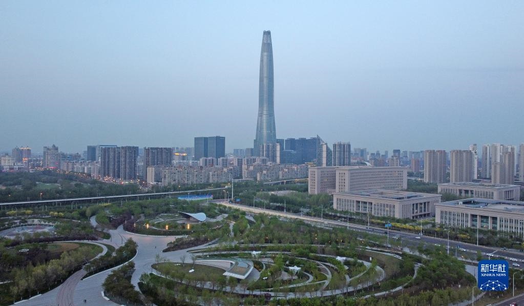 這是4月14日拍攝的中新天津生態(tài)城新貌(無(wú)人機(jī)照片)。新華社記者 趙子碩 攝