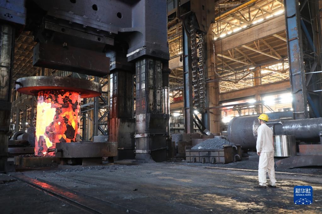 在中國(guó)一重集團(tuán)有限公司,工人在車(chē)間內(nèi)忙碌(5月19日攝)。新華社記者 唐鐵富 攝