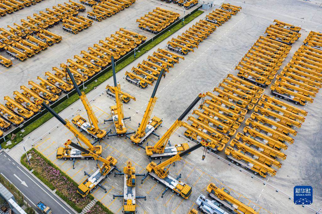這是5月9日拍攝的江蘇徐工集團(tuán)重型機(jī)械有限公司的產(chǎn)品調(diào)試場(chǎng)(無(wú)人機(jī)照片)。新華社發(fā)