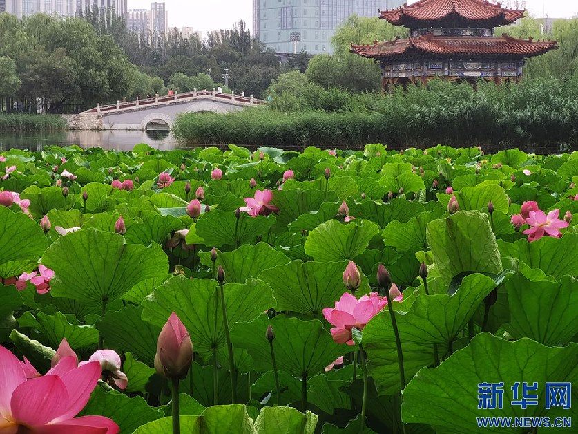 每年7月中旬,內(nèi)蒙古自治區(qū)呼和浩特市公園內(nèi)的荷花進(jìn)入盛開期,市民們紛紛走入公園,欣賞塞外青城“接天蓮葉無(wú)窮碧,映日荷花別樣紅”的美麗景色。