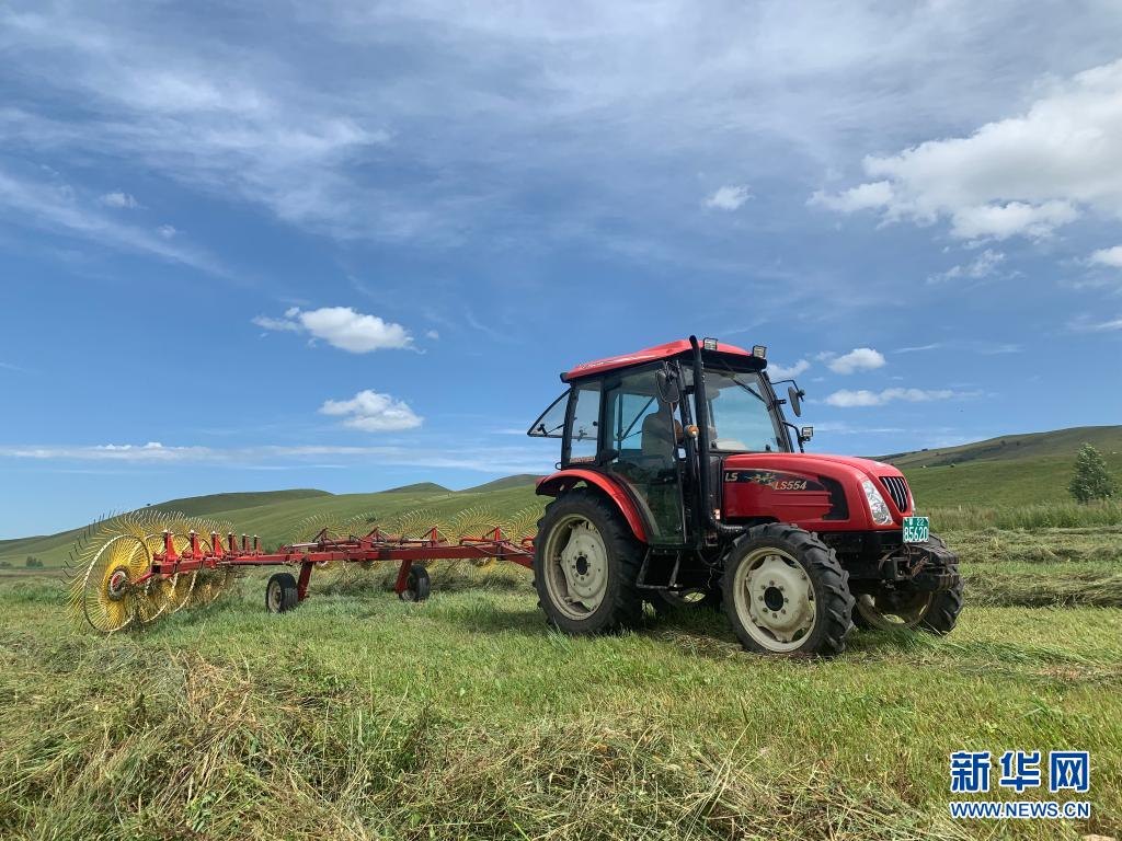 立秋過后,內(nèi)蒙古興安盟牧民駕駛機(jī)械開始打草工作,為牛羊過冬儲備草料。此次秋季打草將持續(xù)至9月中旬。今夏,興安盟草原雨水豐沛,加之禁牧工作有效落實(shí),草原產(chǎn)草量較往年有所增加。新華社記者王靖攝