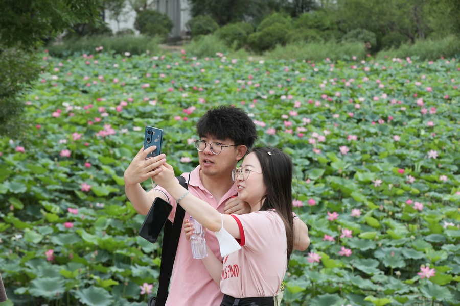 7月30日,呼和浩特青城公園的荷花進入最佳觀賞期,吸引眾多游人前來打卡。