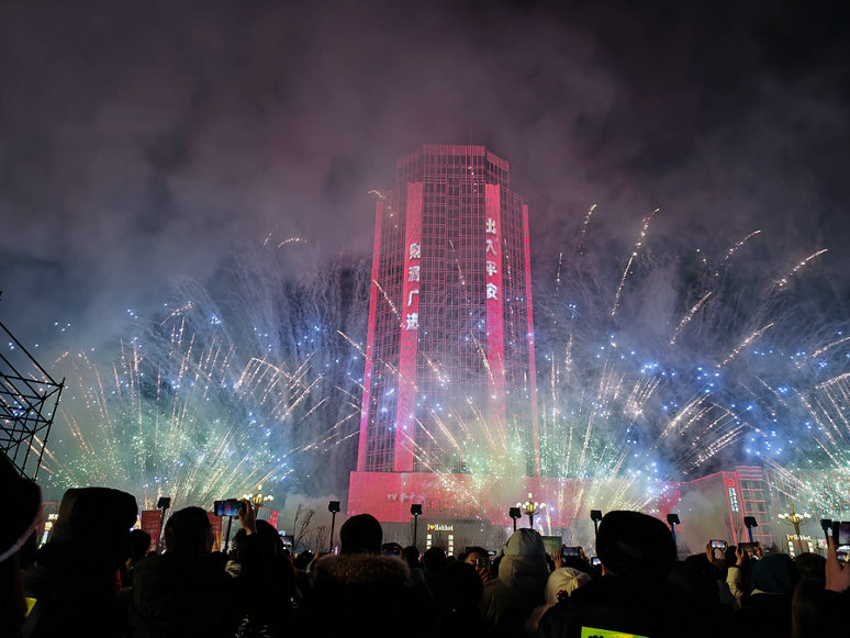 1月1日零時(shí),隨著新年鐘聲的敲響, 內(nèi)蒙古自治區(qū)呼和浩特市數(shù)萬人在新華廣場(chǎng)倒數(shù),迎接2024年到來。